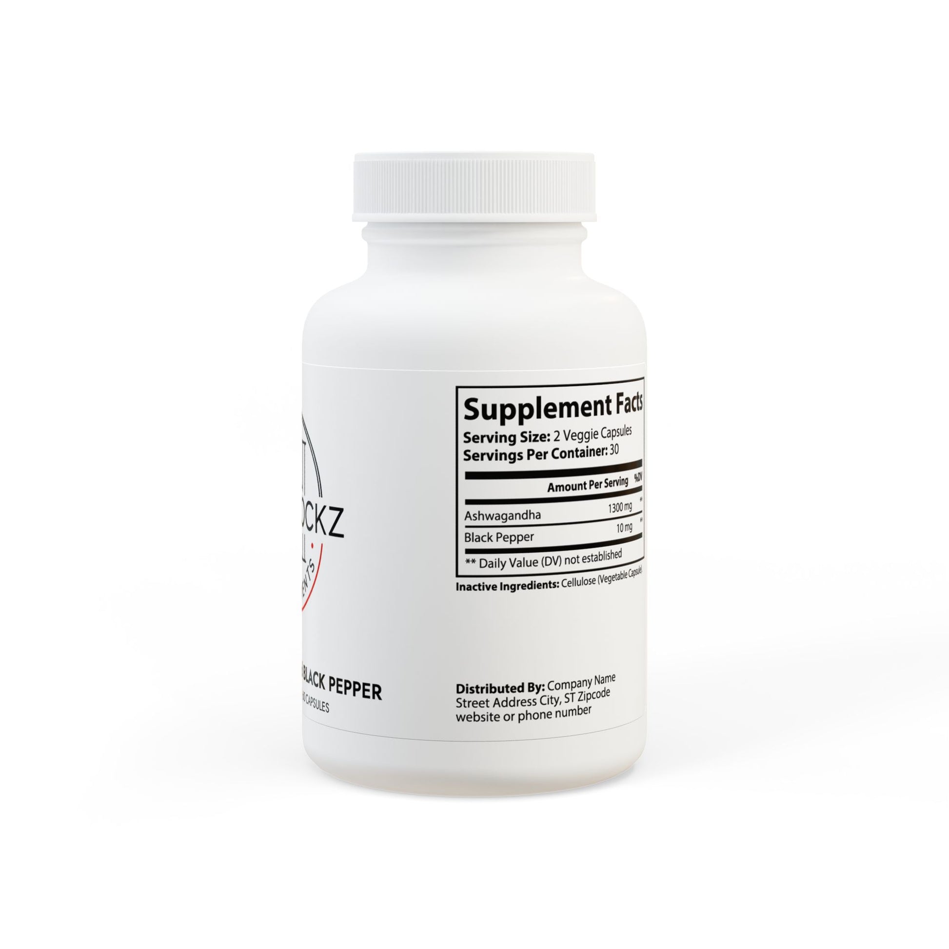 Ingredients: Ashwagandha, Black Pepper. Inactive Ingredients: Cellulose (Vegetable Capsule).